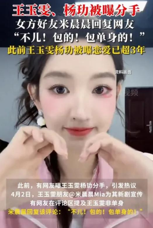 2024年上半年,两人正式分开,杨玏搬离同居豪宅,社交零互动。截至发稿前,王玉雯、杨玏双方均未就分手传闻正式回应。